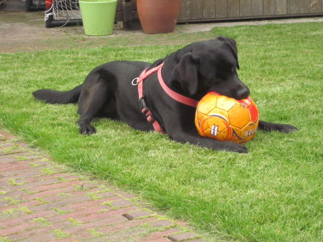 Honden foto's > lauraaa > haha samy is gek op zn bal!!
