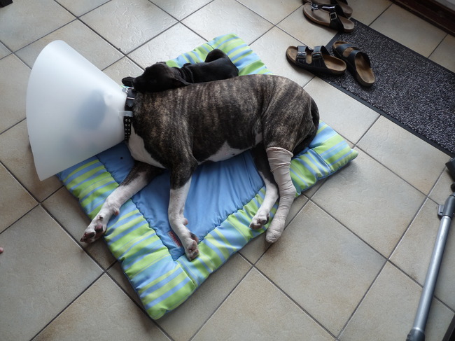 Honden foto's > Clara > Dana's pootje in het gips, Kyra probeert haar te troosten