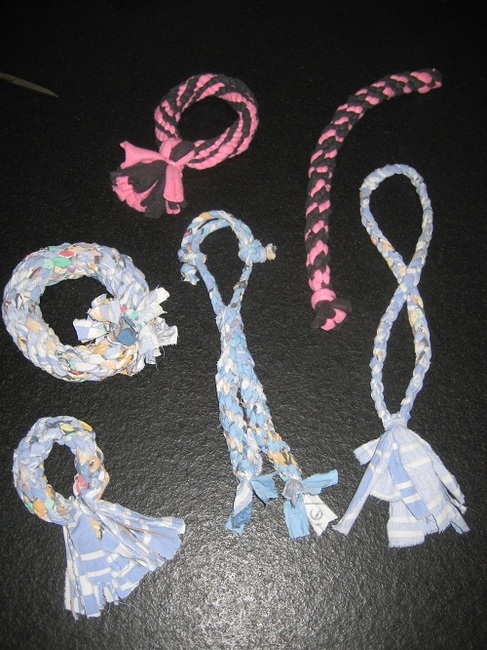 Honden foto's > Olga > Enkele knoopwerkjes van repen katoen en fleece.