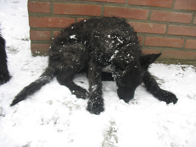 Honden foto's > Judith en Babbe. > De eerste kennismaking met sneeuw; wat is dat ???????