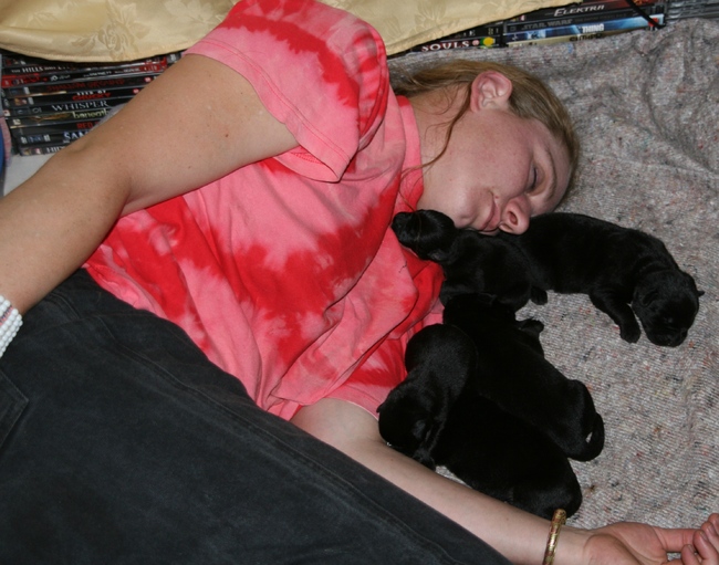 Honden foto's > Marian > in slaap vallen bij de puppy's