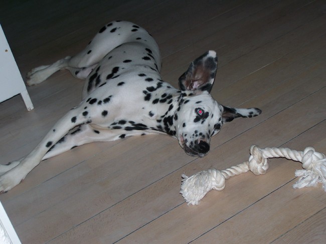Honden foto's > Thea & het viertal > Indy ligt lekker met d'r oren omhoog...lijkt gelijk een heel andere hond!