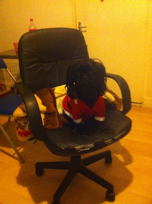 Honden foto's > julia en spike > kerstpakje