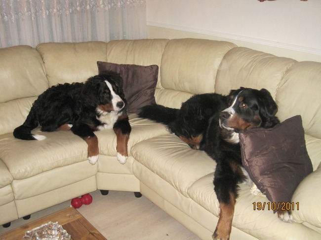 Honden foto's > Corrie,Kay,Bowy+,Diesel > Samen op de bank