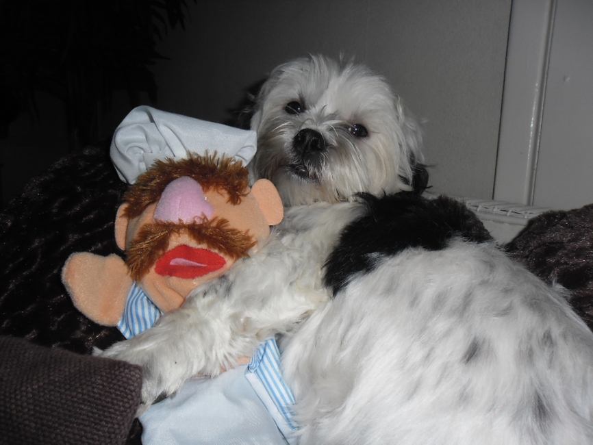 Honden foto's > Mormel,s baasjes Claire & Jasper > Met de muppet kok slapen