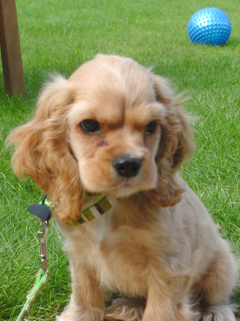 Honden foto's > Patje en Tibo > Tibo, 8 weekjes. Nog wat onder de indruk van zijn nieuwe huisje.