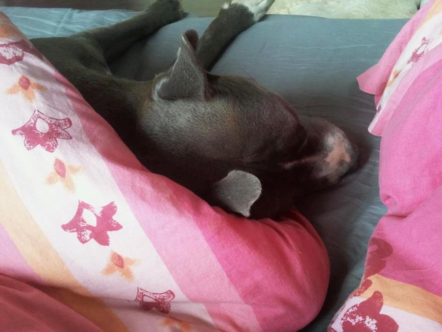 Honden foto's > DIESEL > Lekker op bed!