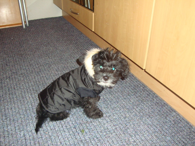 Het was zooooo... koud!!! Gelukkig kreeg ik van mijn vrouwtje een lekker warm jasje... van Renate