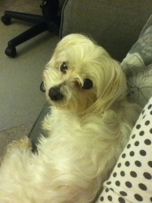 Honden foto's > Manouk > Suus lekker bij mij op de stoel :)