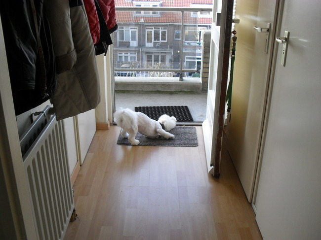 Honden foto's > Gina Heuvelsland > Quincy terug van de trimsalon, gewassen en geschoren.