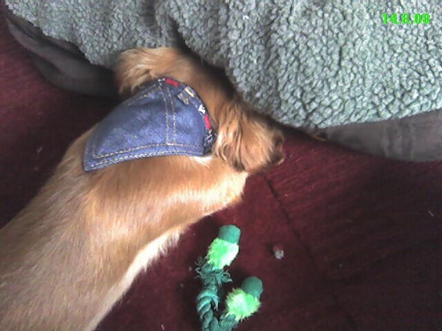 Honden foto's > Yootje & Thomas > Mijn speeltje zit onder mijn kussen verstopt!