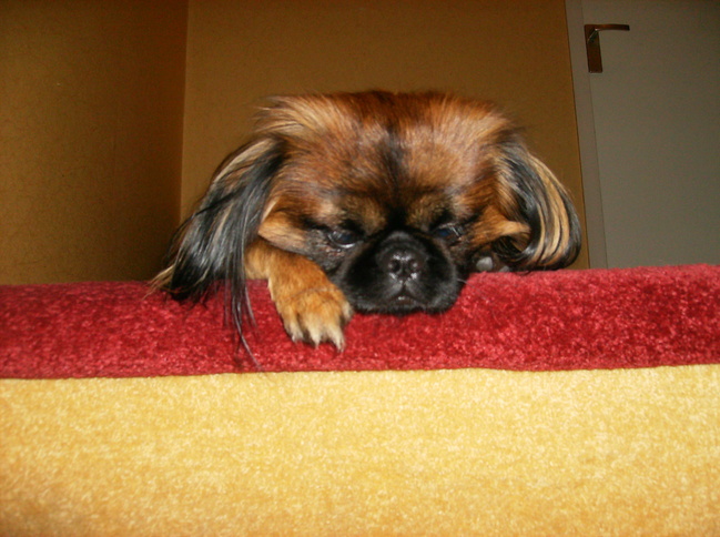 Honden foto's > Jacky en Gizmo > Lekker luieren bovenaan de trap (15 maanden)