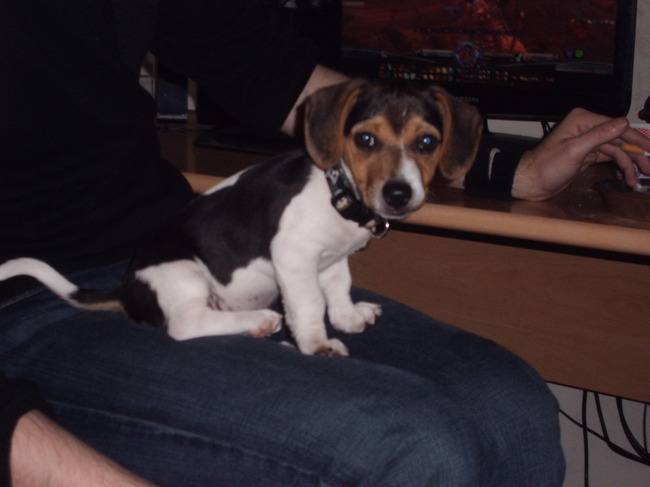 Honden foto's > Dees&Dexter&Toby > Bij mijn grote vriend op schoot!