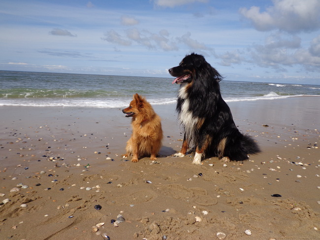 Honden foto's > Barbara, Vos, Quin en Boo > Strand Den Helder