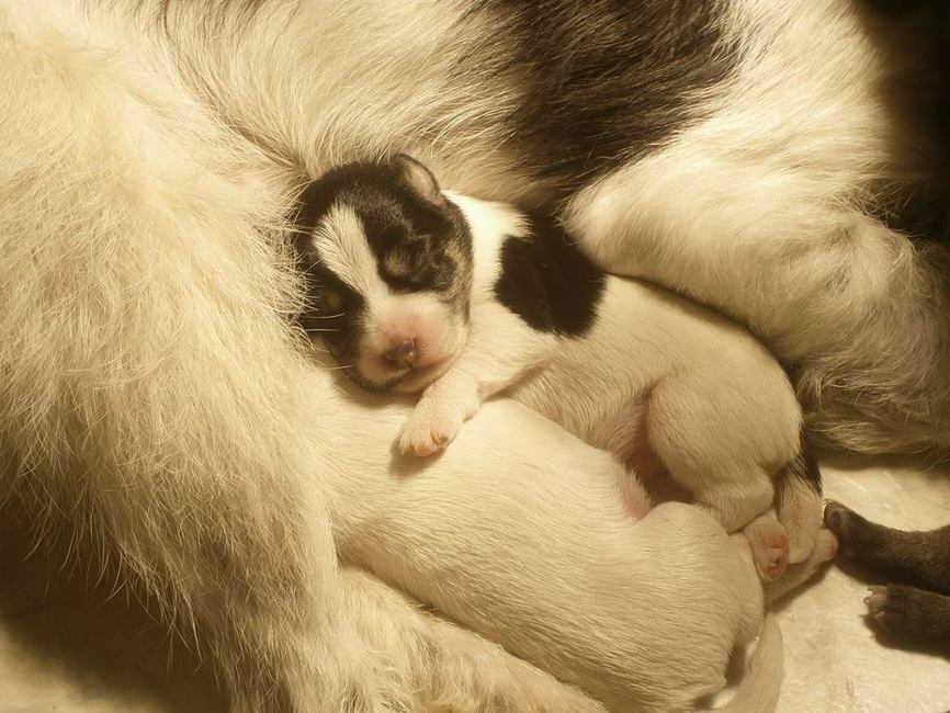 Honden foto's > patries > kleine kaos bij zijn mama zusje en broertje