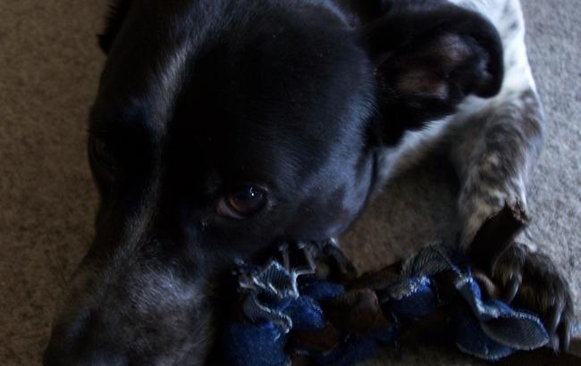 Honden foto's > Jacintha > gucci met het eerst uitprobeersel van zelfgemaakt speeltje ^^
