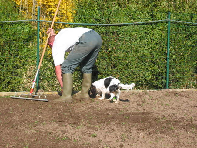 Mee helpen met baasje de tuin om te spitten van Erica