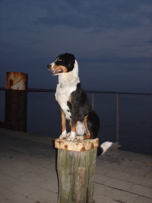 Honden foto's > Dobber † > Hoog en droog op een bolder bij Holwerd ;)
