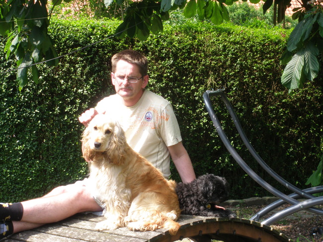 Honden foto's > Carla > met mijn baasje en mede hondgenoot in de zon