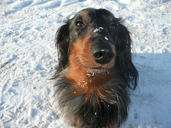 Kort gezegt:"Ja, er zit sneeuw op mijn neus nou en?! Gooi dat speeltje ik wil hem terug brengen." Ps. Ja ik ben een teckel en hou van appoteren van Marleen