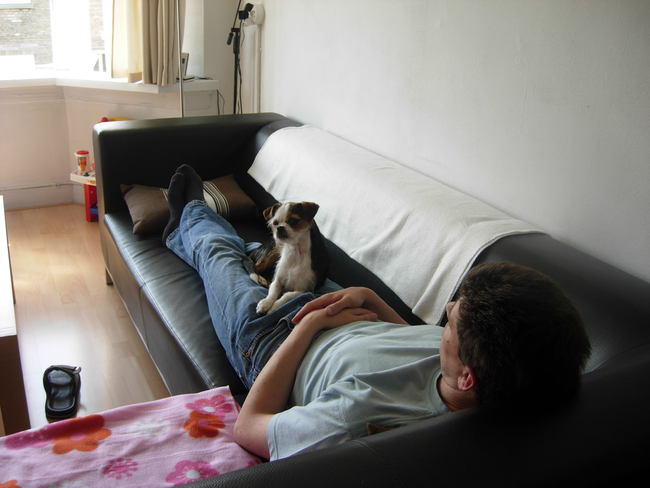 Honden foto's > Annette & Misty > Twee luilakken op de bank...