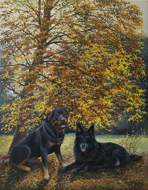 Honden foto's > harley en jacx > schilderij van mijn twee ventjes