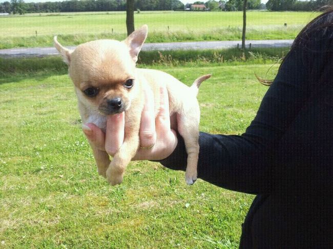 Honden foto's > Daisey & Zoëy > Onze kleine Zoëy. Op deze foto hadden we haar net. 7 weekjes en bijna 800 gram.