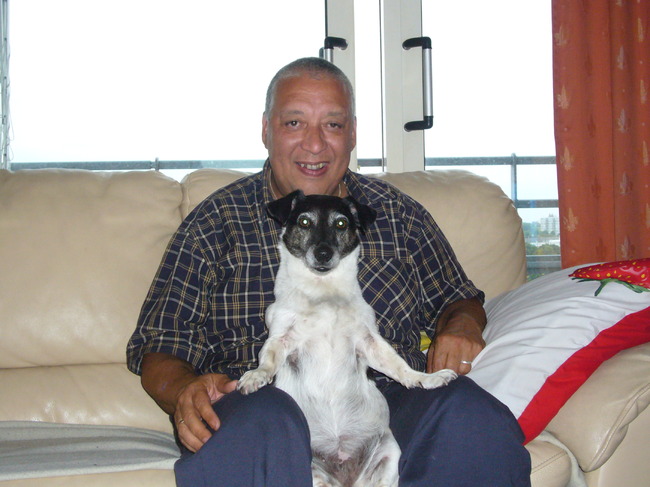 Honden foto's > Marion, Dick,Woola, en Brutus > Lekker ontspannen met het baasje t.v. kijken.