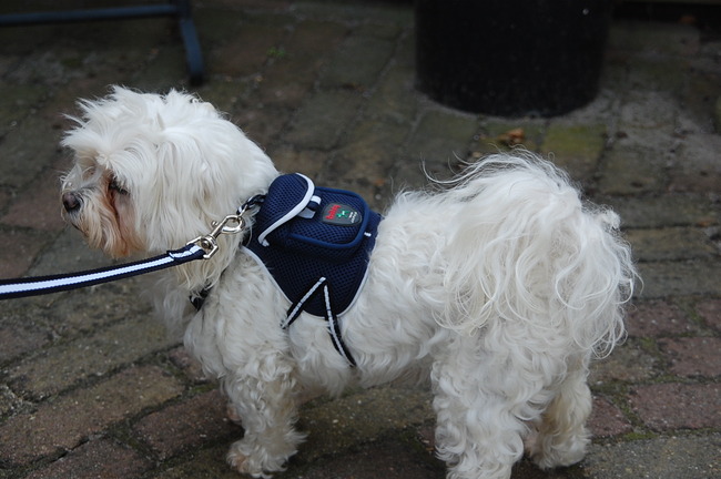 Honden foto's > marijke b > klaar voor de reis, met haar eigen rugzak