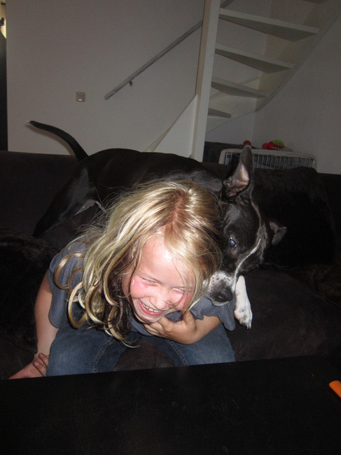 Honden foto's > Claudia & Layka > Lachen en gieren :P