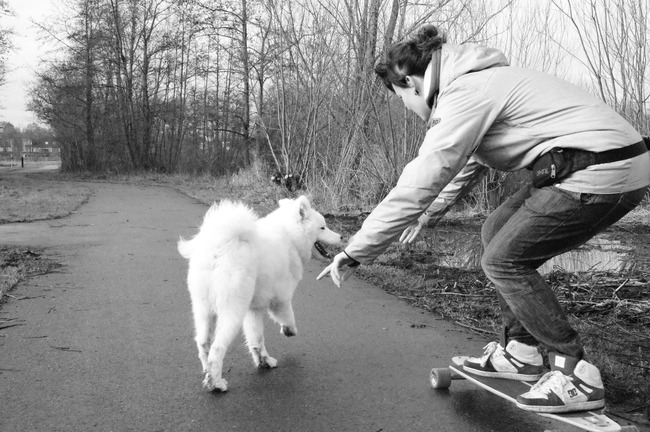 Skateboarden met pootje van SamojeedPolar&Arctic