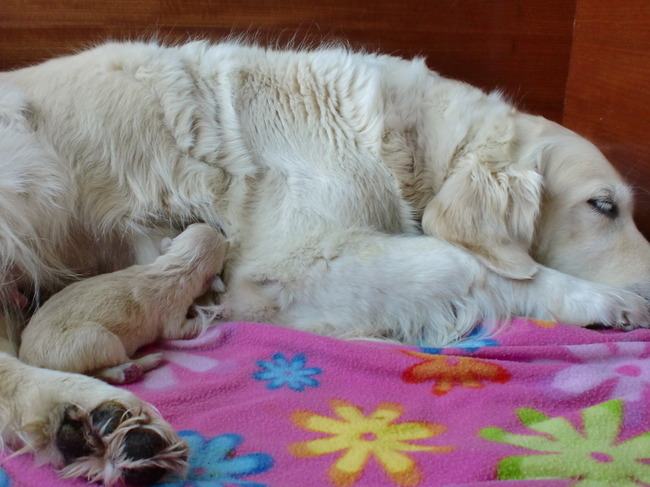 Honden foto's > Esther > eindelijk is mama rustig en kan de kleine uitgebreid drinken