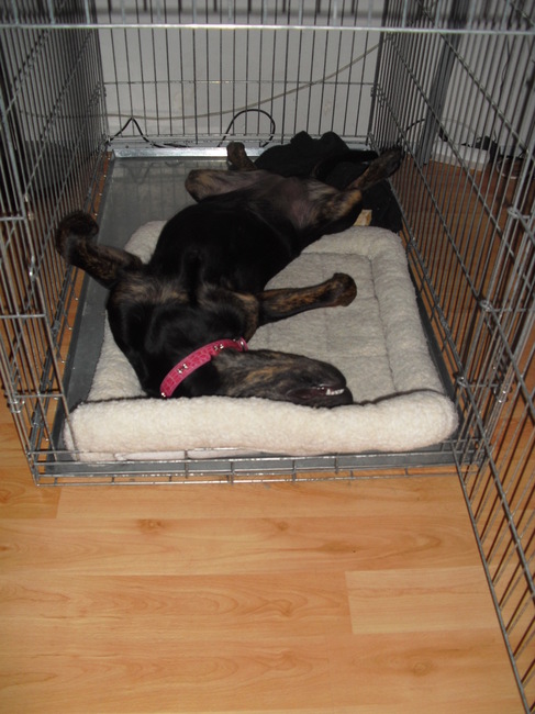 Honden foto's > Rhianne + Falkor & Joy > Joy slaapt graag op haar rug.