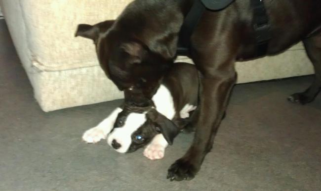 Honden foto's > Dido ~ Indy & Rufus > De eerste kennismaking tussen Indy en Rufus