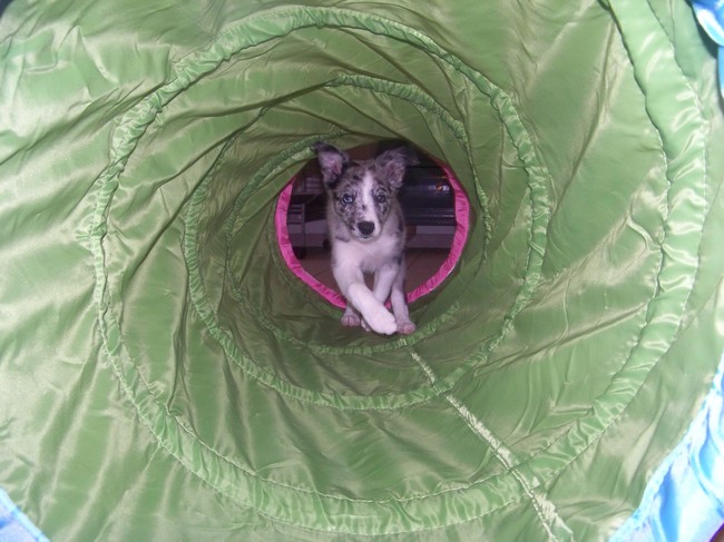 Honden foto's > Dominique > Daiya door de tunnel !