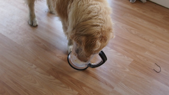 Honden foto's > carla & joyce > Spoeky de kom van Lady's gemalen voer leegeten