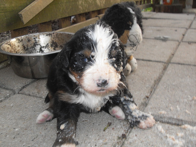 Honden foto's > Sharon & Marley > Marley voor de 1e x brinta