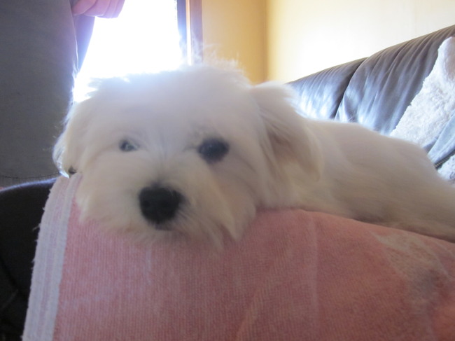 Honden foto's > Elke&Balou > Balou een beetje aan het luieren op schoot :D