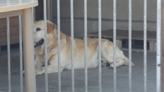 het is te warm, dus ik zoek verkoeling in mijn oude hok!! Dat vonden ze grappig, want de deur stond gewoon open en ik deed dit uit vrije wil!! van imke steevens