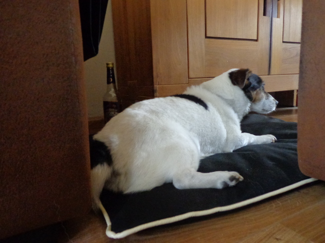 Honden foto's > Barbara, Vos, Quin en Boo > Nieuwe kussen voor Igor (hond van mijn moeder)