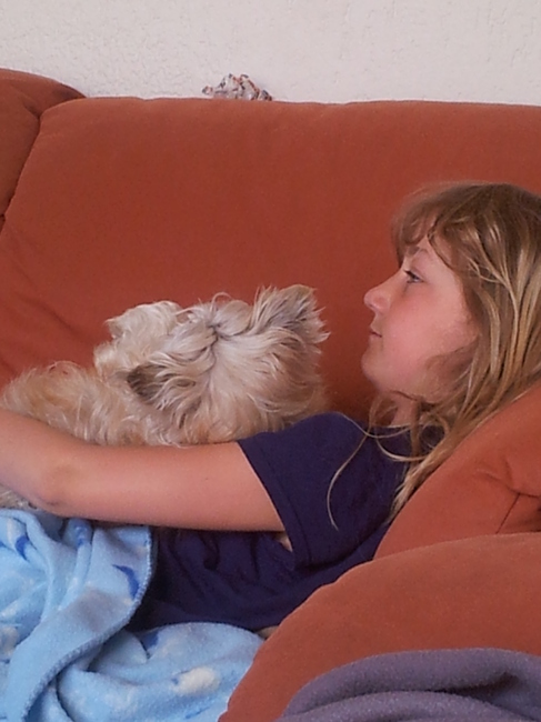 Honden foto's > Sandra > Dat vond ze zooo fijn, lekker bij je hangen.