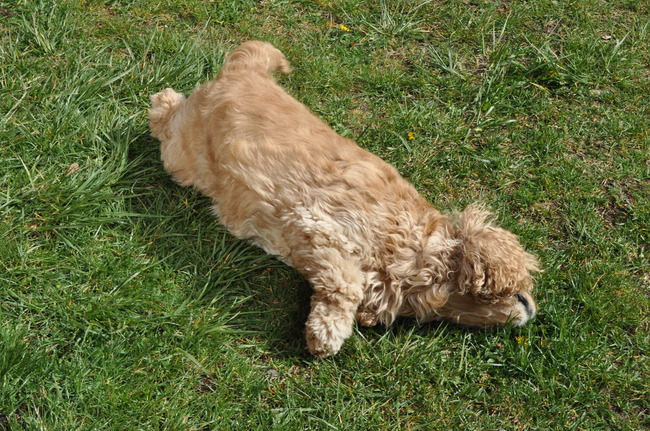 Honden foto's > Kwibus Amerikaanse Cocker > Hier hou ik zo van! Lekker rollen door het gras...