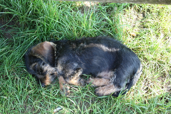 Honden foto's > hondenuitlaatservice haaksbergen > ONZE TECKEL PUP DAZZLE.DAZZLE IS MOE VAN HET RENNEN.