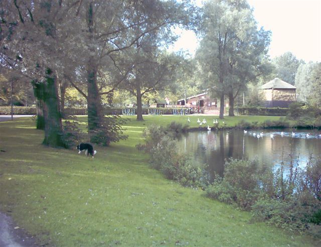 Honden foto's > Hans Fidom > Max in Sloterplasperk-sept. 2004 - A'dam met Hans aan de fiets