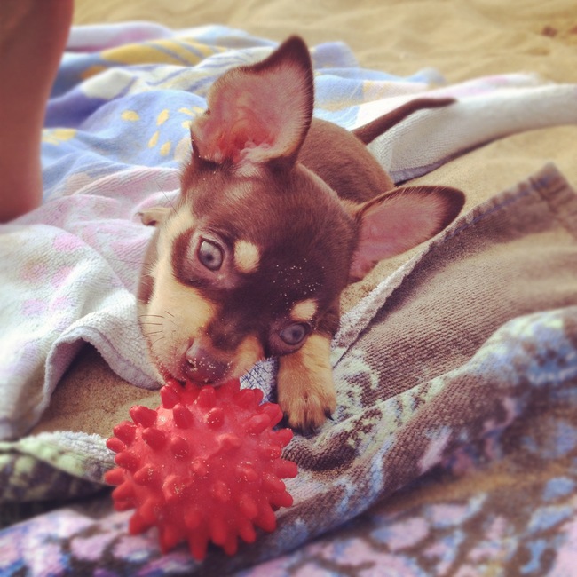 Honden foto's > ivy & junior > junior spelen op strand 9 wkn