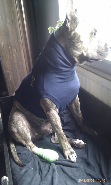 Honden foto's > Connie & Sam > Net thuis na een operatie en nog aan het bijkomen van de narcose.