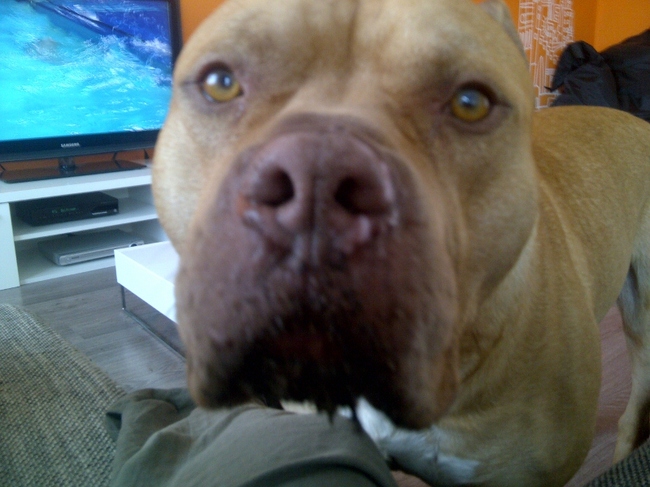 > Altas, op de eerste dag al met z'n snuit in de plantenbak. Huiskamer, heel iets anders dan een asielhok.
