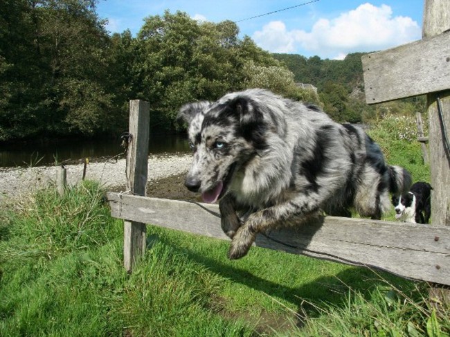 Honden foto's > lode > JJ Rohan en Rising Sun Lando jumping a fence