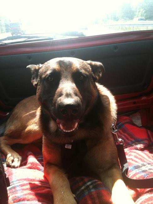 Honden foto's > Roel > in de auto op weg na weekje logeren bij vriendin