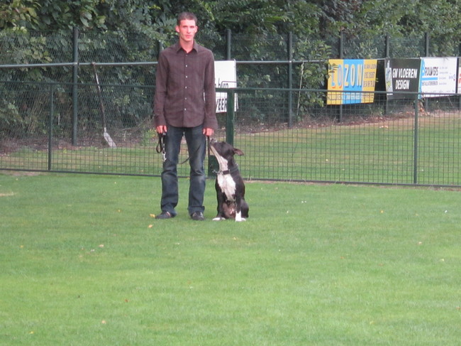 Honden foto's > Claudia & Layka > Goed op baasje letten!
